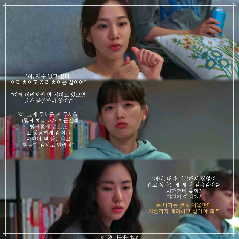 "아니, 내가 피곤해서 힘없이 걷고 싶다는데